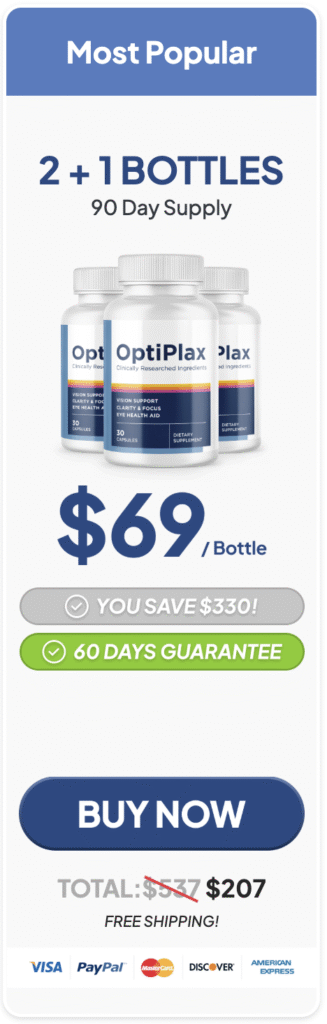Additionally, every purchase of OptiPlax is backed by a 60-day money-back guarantee, offering you a risk-free opportunity to experience its benefits. Whether you’re looking to protect your vision as you age or address existing concerns, OptiPlax provides a natural, effective, and convenient solution.