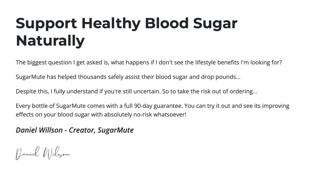 Additionally, every purchase of SugarMute is backed by a 90-day money-back guarantee, offering you a risk-free opportunity to experience its benefits. Whether you’re looking to proactively manage your blood sugar or address existing concerns, SugarMute provides a natural, effective, and convenient solution.